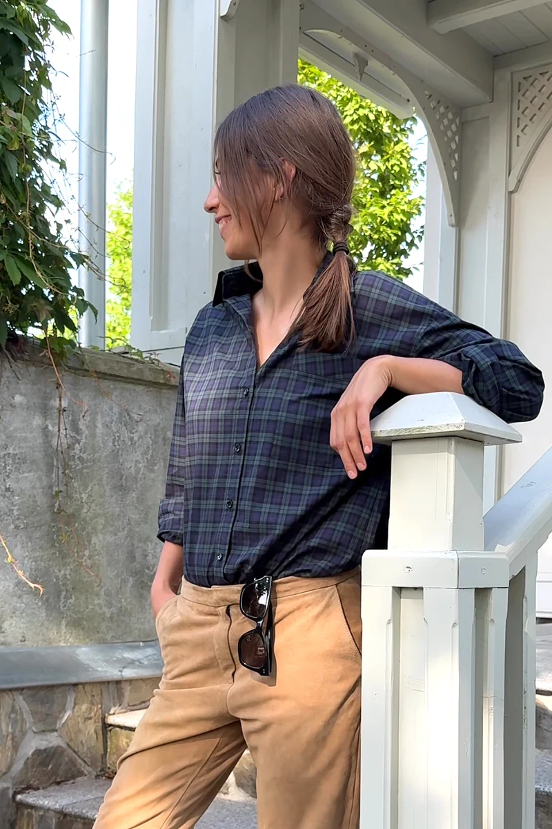 BOYFRIEND TARTAN to koszula w granatowo-zieloną kratkę, zapinana na czarne guziczki. Ten typ koszuli to nasz najpopularniejszy model – ponadczasowa forma, lekki oversize i klasyczne kolory sprawiają, że jest odpowiednia na każdą okazję.