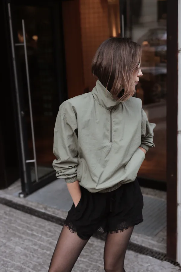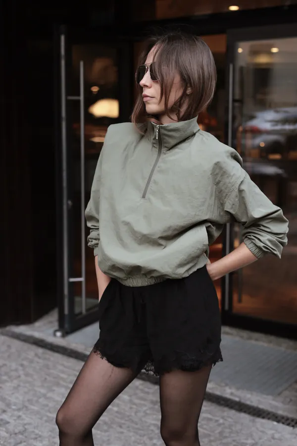 Bluza ISLA to oryginalna i super modna bluza wykonana w 100% z nylonu. Jej niewymuszony styl sprawdzi się w codziennych, casualowych, jak i sportowych stylizacjach. Krój to lekki oversize, który dodaje swobody. Posiada efektowy wysoki kołnierz typu polo, który nadaje bluzie ISLA wyjątkowy charakter. Zakończona tunelem z gumką- dzięki czemu można ją dodatkowo zbluzować. Linia ramion wyraziście została podkreślona odpinanymi poduszkami.