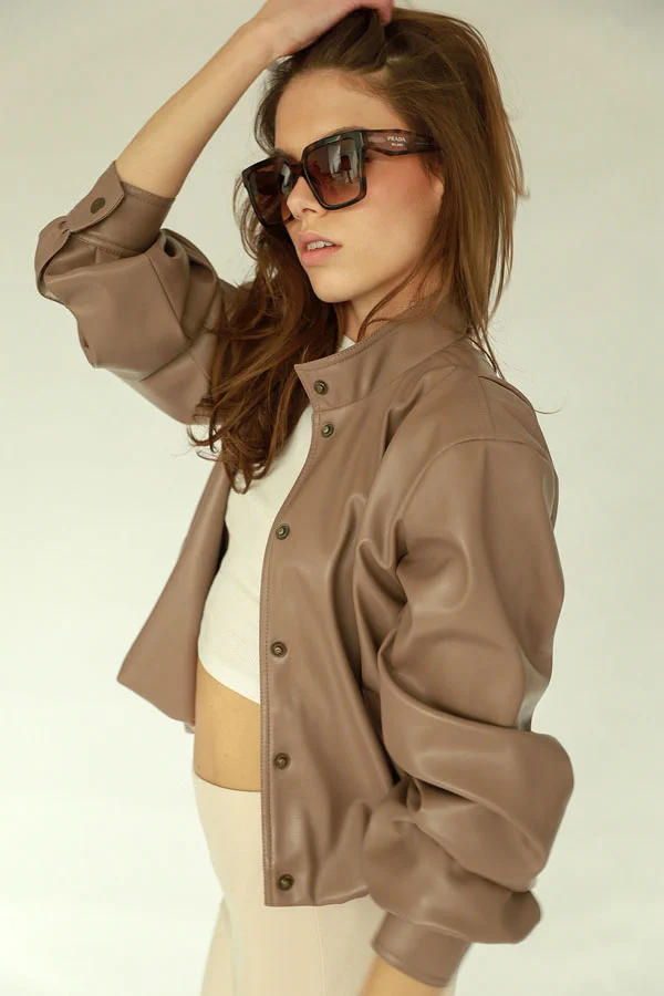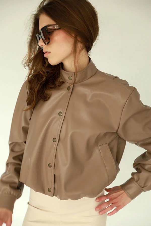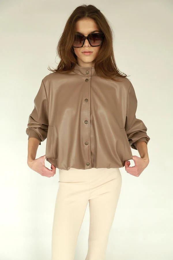 Wyjątkowa kurtka BILLY o fasonie „bomberki”, w przepięknym odcieniu beżu. Wykonana w 100% ze ekoskóry, zapewnia wygodę i komfort noszenia a przy okazji jest przyjazna środowisku. Kurtka posiada oryginalne bufiaste zakończenie dołu i jest zapinana na ozdobne metalowe napy. Kurtka BILLY jest szyta na 100% wiskozowej podszewce.