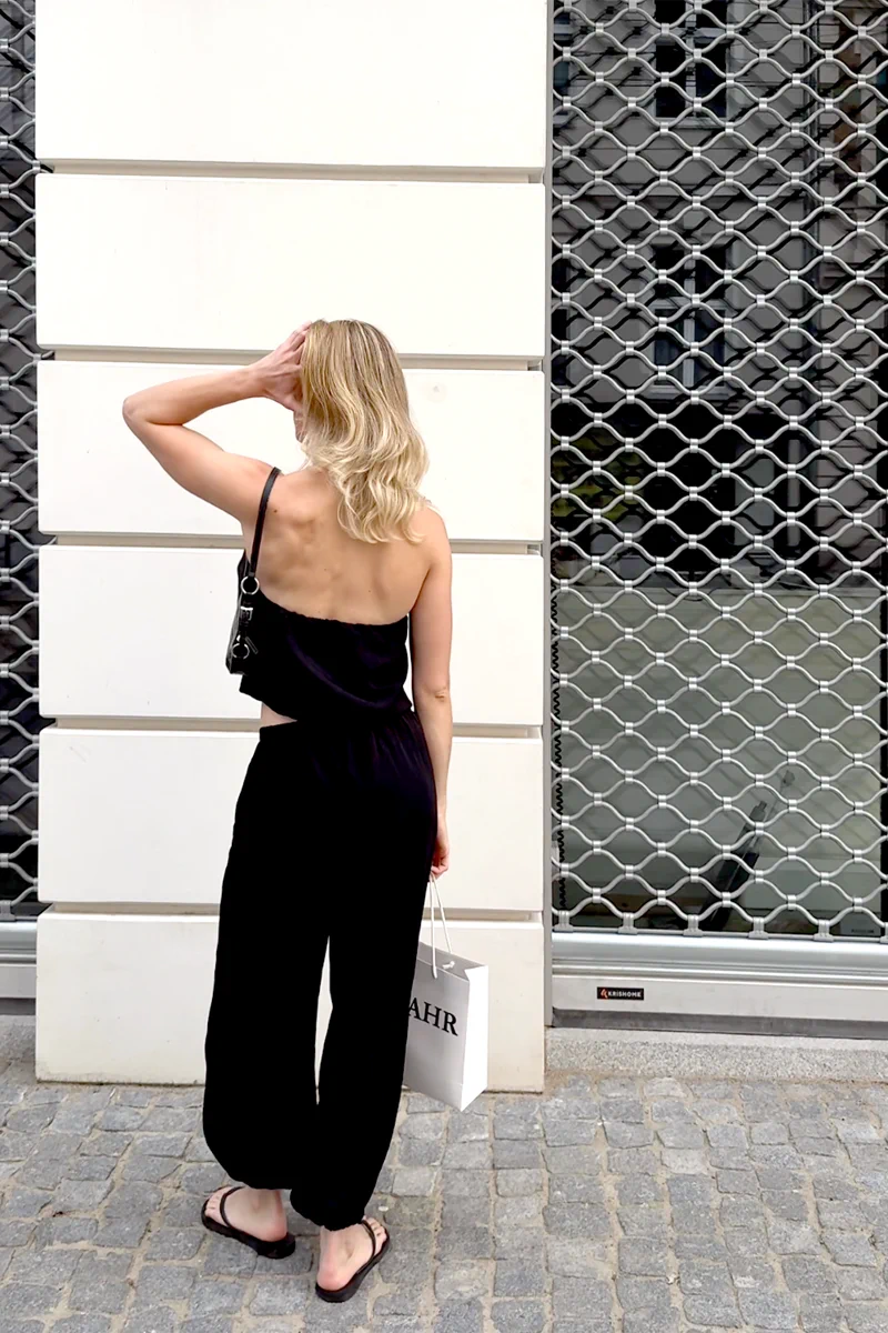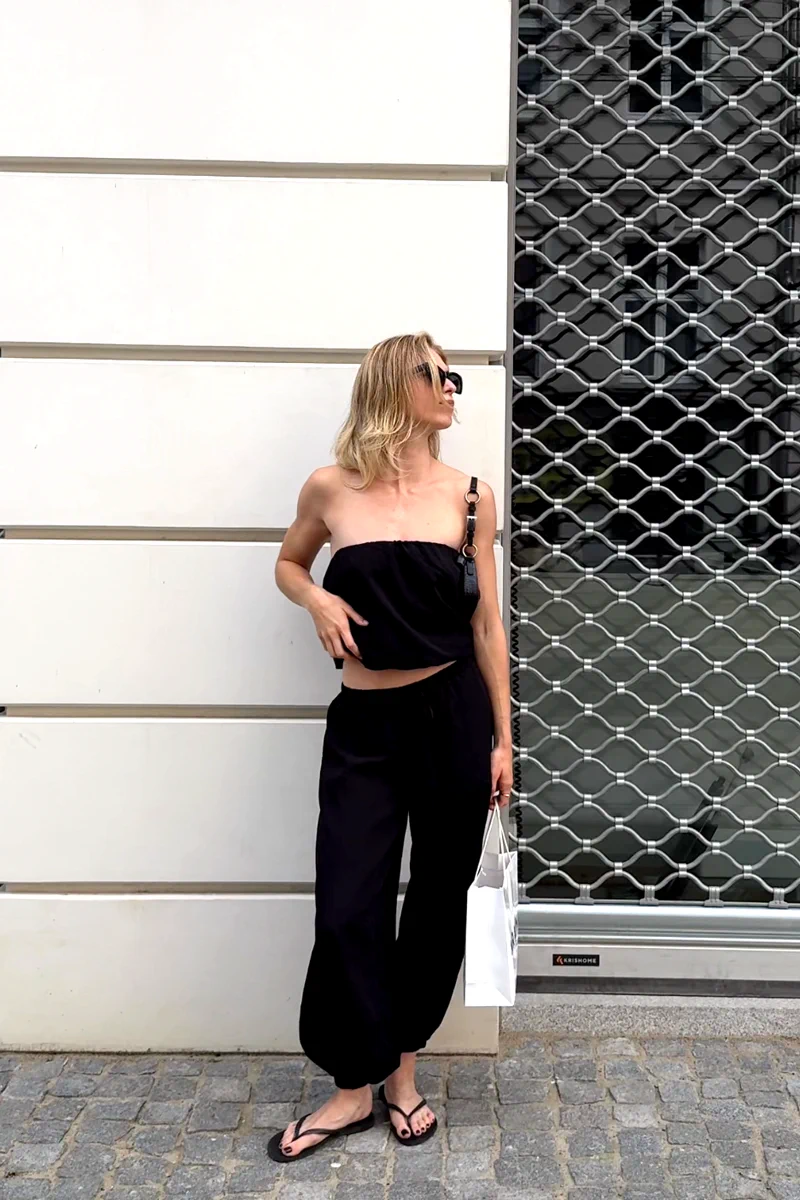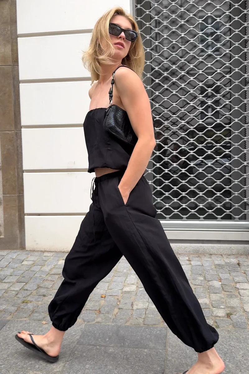 Spodnie JOSS to szerokie, lekkie i super-wygodne spodnie w najmodniejszym kroju szerokich alladynek. JOSS to spodnie w gumkę i zawiązywane na sznurek. Posiadają kieszenie i szeroką nogawkę. Idealnie wyglądają w zestawieniu z topem CLEO.