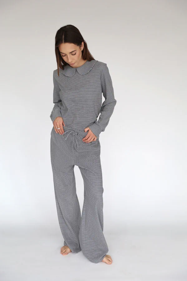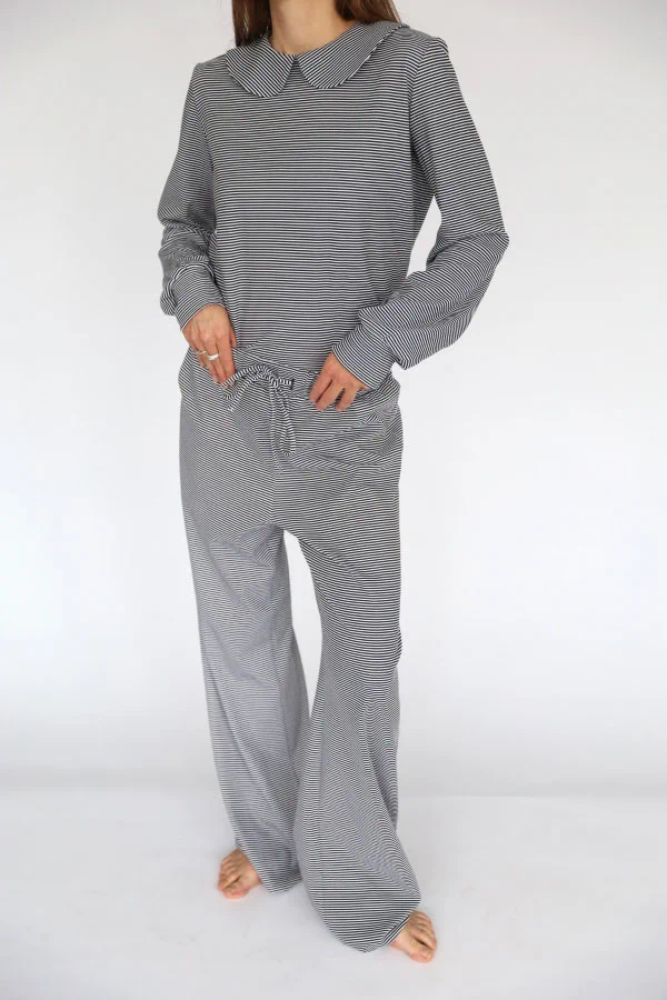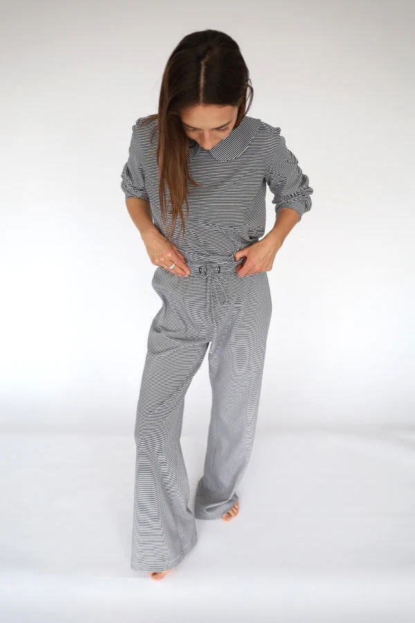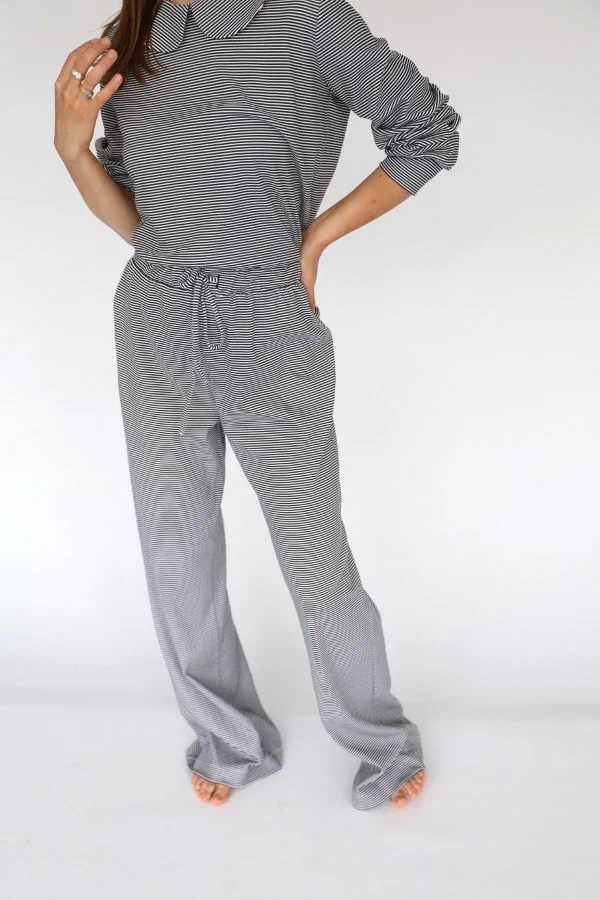 Spodnie LANA to wygodne, casualowe spodnie w czarny prążek. Idealna alternatywa dla dresów do noszenia w domu lub na nieformalne wyjścia.