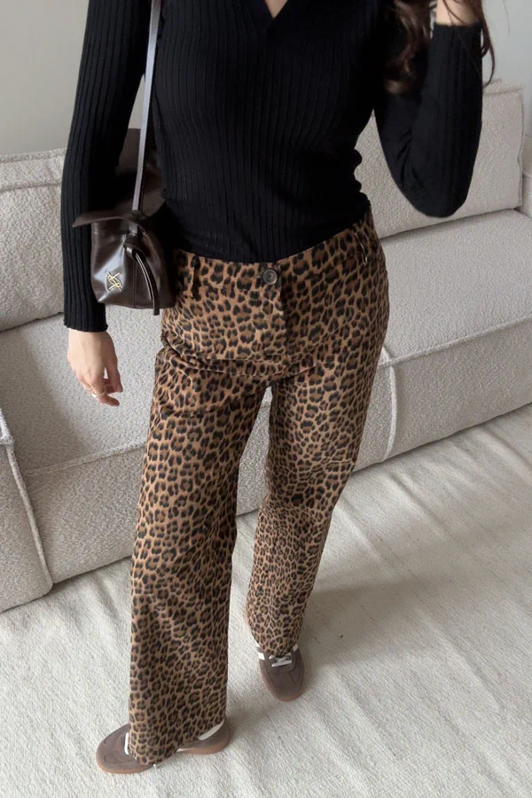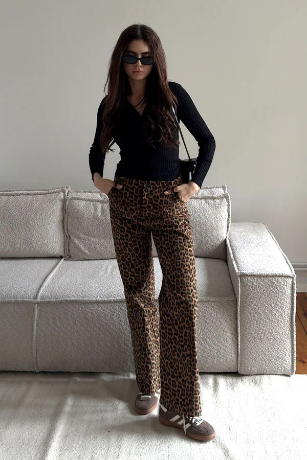 Spodnie PARIS to oryginała propozycja spodni w ponadczasowym princie panterki, która ożywi każdą stylizację i dodada jej modowego twista.