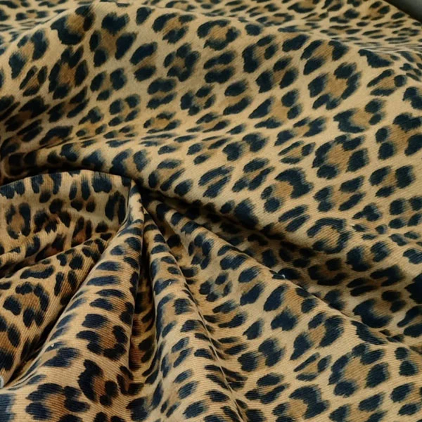 Spodnie PARIS wykonane są z włoskiego sztruksu bawełnianego drukowanego we wzór panterki.