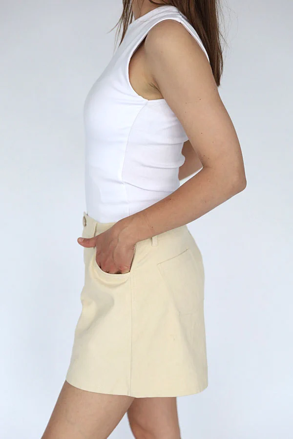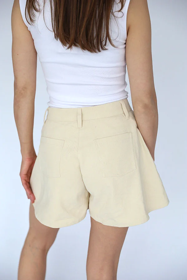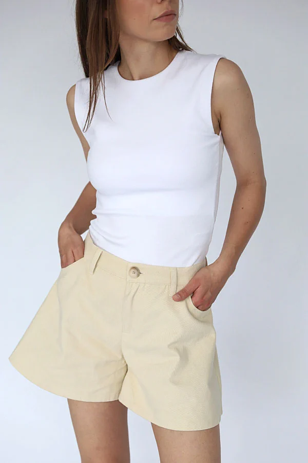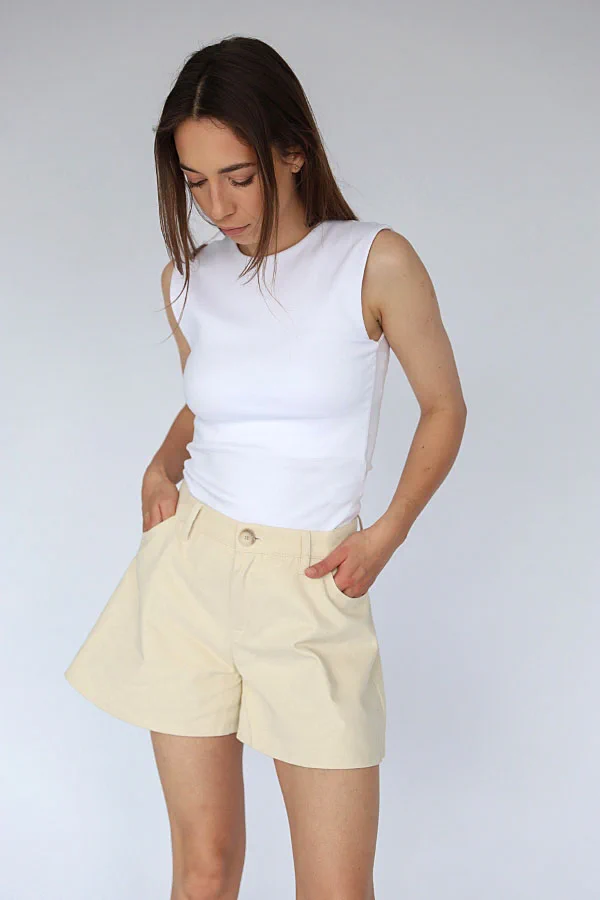 Szorty SOFIA wykonane są z miękkiego denimu, dzięki temu są przewiewne i niezwykle wygodne. Szorty SOFIA mają luźny, trapezowy krój w kształcie litery A, który podkreśla linię nóg i zapewnia pełną swobodę ruchów. Natomiast najmodniejszy kolor masełkowy ociepli każdą stylizację i doda jej świeżości.