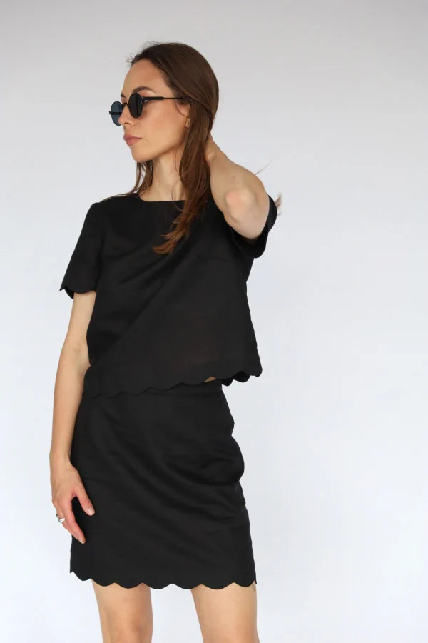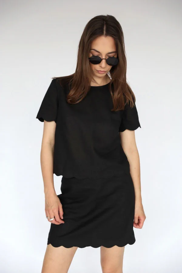 Spódnica ROXY to klasyczna czarna mini z oryginalnym dołem i podcięciem w kształcie fali.