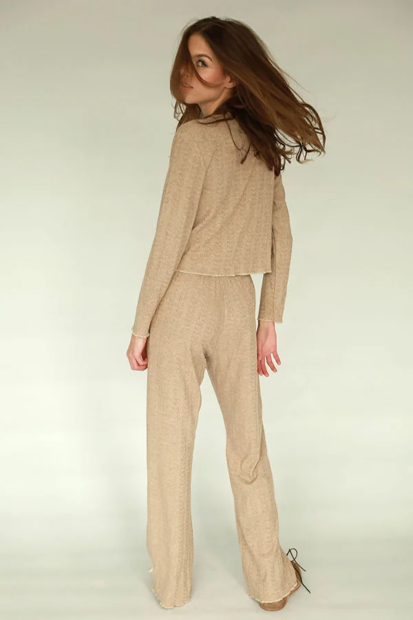 - Na zdjęciach cynamonowy sweter LOU w połączeniu ze spodniami LOU.