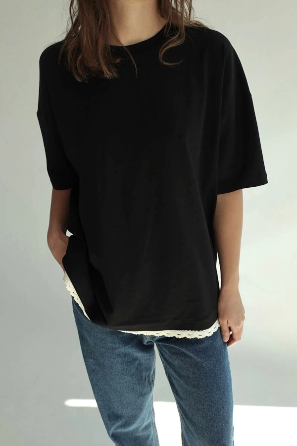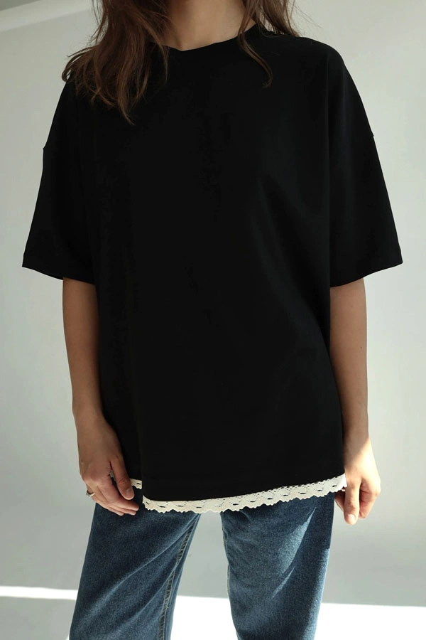BUDDY to bawełniany oversizowy t-shirt wykonany z mięsistej, ciężkiej bawełny. Aby nadać charakteru, koszulka jest wykończona bawełnianą koronką.